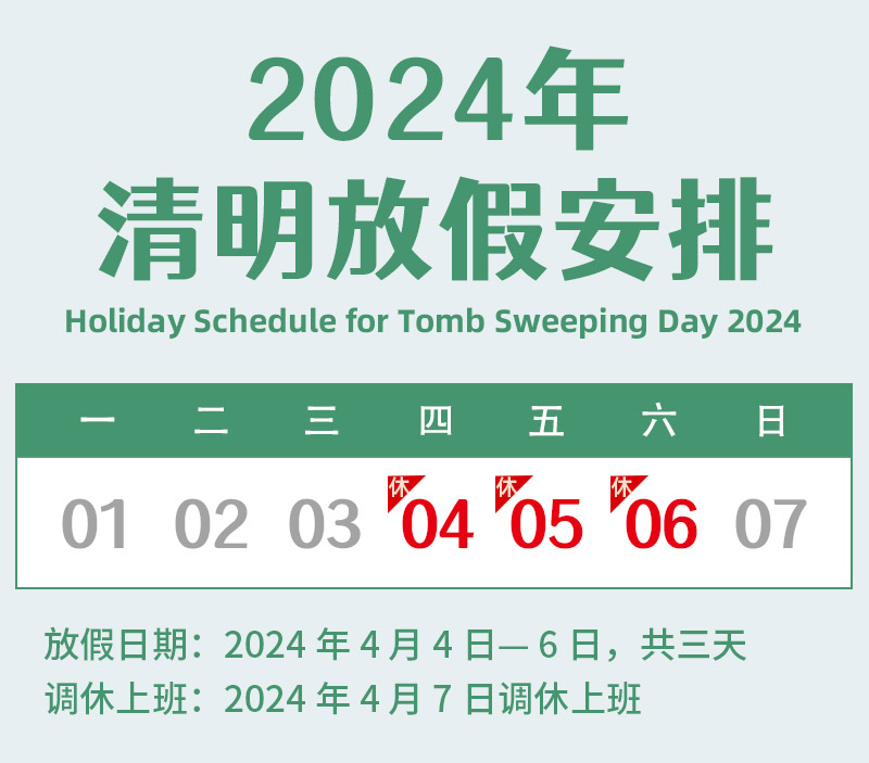 根據(jù)國務院辦公廳關(guān)于 2024 年部分節(jié)假日安排的通知,公司 2024 年清明節(jié)放假安排如下: