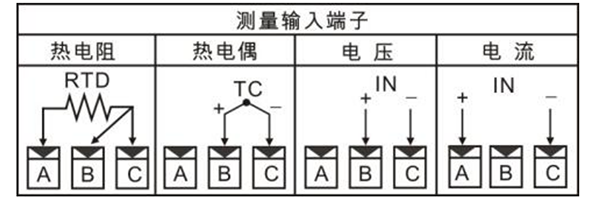 現(xiàn)場(chǎng)模擬量信號(hào)常規(guī)的有4種:熱電阻、熱電偶、電壓、電流??紤]到所有的接入類型,儀表的信號(hào)輸入端子會(huì)有ABC三個(gè)。按照順序來(lái)說(shuō),熱電阻信號(hào)現(xiàn)場(chǎng)傳感器一般是三線制的,分為2種顏色,一種顏色一根,一種顏色2根,看熱電阻的接線圖,很明顯看到A端子接的是一根獨(dú)立的線,B、C線在上端是短接的,所以要將單獨(dú)顏色的一根線接在A端子,相同顏色的2根線接在B和C端子。熱電偶和電壓輸入接線都是2根線的,雖然熱電偶是mV信號(hào),電壓一般測(cè)量的是0-5V信號(hào),但是歸根結(jié)底都是電壓信號(hào),所以接法都是正極接在B端子,負(fù)極接在C端子。電流信號(hào)無(wú)論是4-20mA還是0-20mA信號(hào),接法也都是一樣的,都是正極接在A端子,負(fù)極接在C端子。以上的講解都是舉例,實(shí)際拿到產(chǎn)品接線需要核對(duì)接線圖是否與本次的舉例一致,如果不一致就進(jìn)行靈活的變換即可。