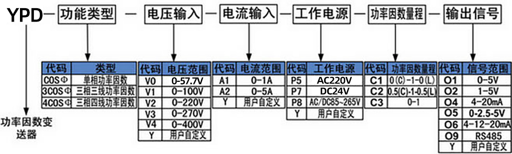 型號(hào): YPD-3COSφ-V1-A2-P5-C2-O6 ;